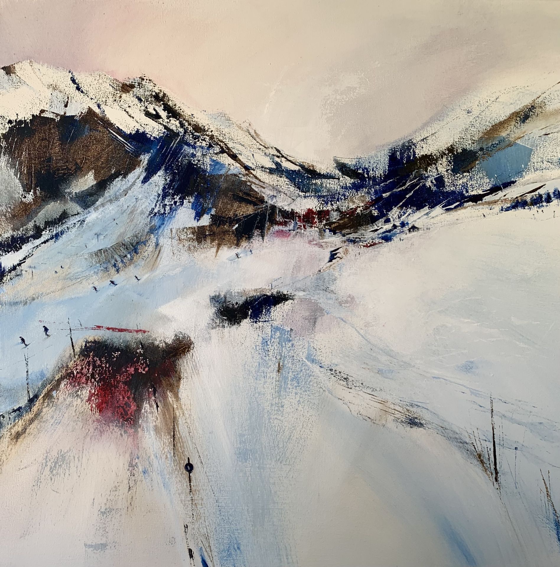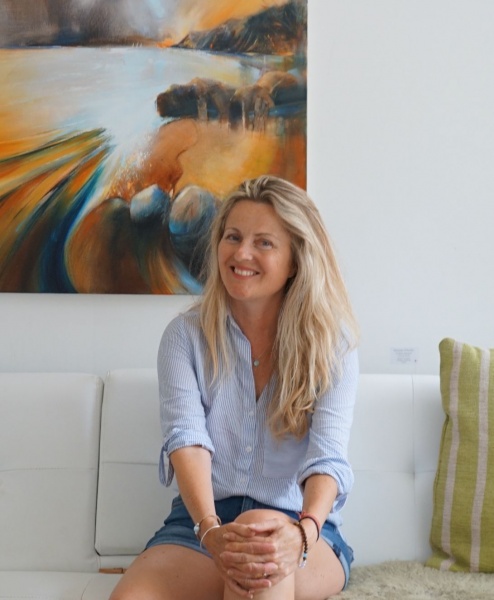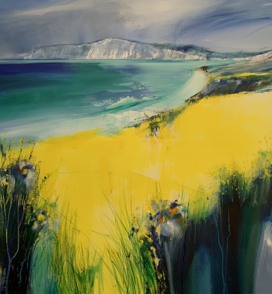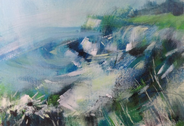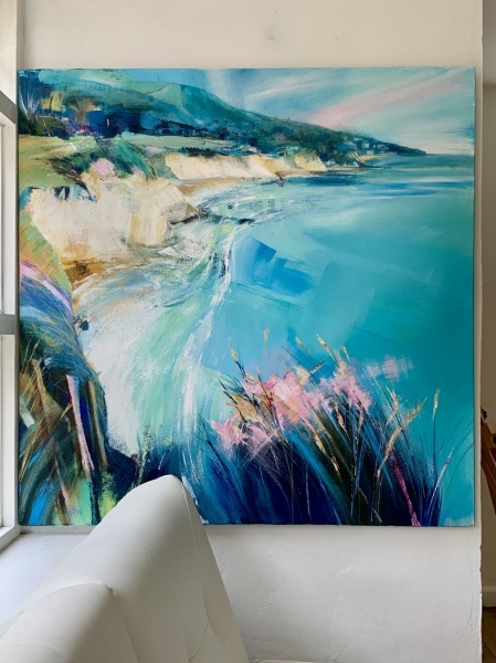 "Living here surrounded by this incredible coastline gives me an unlimited source of inspiration for my acrylic landscape paintings. I'm fascinated by the way a subject is forever changing depending on tide, season and the elements, bright and colourful at times or soft and atmospheric at others. I'm also really into mountains and cliffs with all the drama they bring with their bold lines of strata and strength, so different from the gentle coves here on my doorstep. I like to add a semi-abstract aspect to my work which comes from how I feel about a place too."